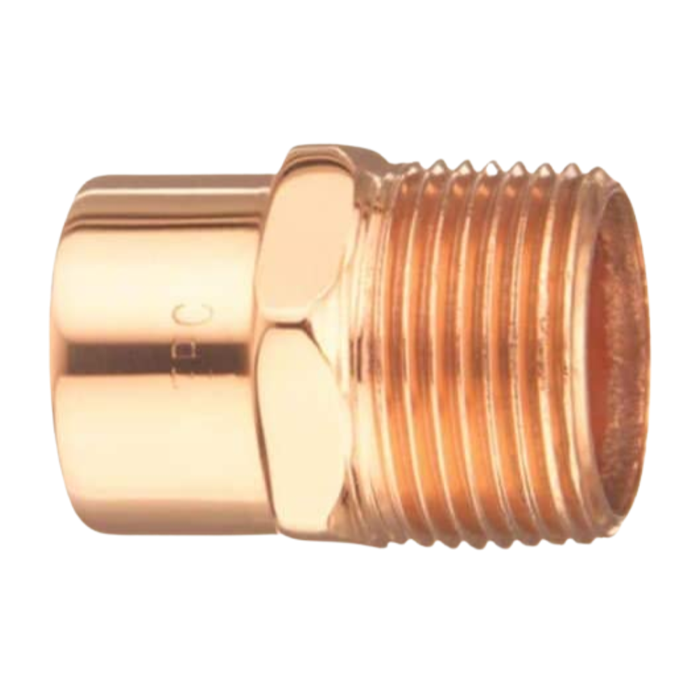 Accesorio de cobre que cuenta con una rosca exterior (tipo macho) para una instalación fácil a tubos, llaves de paso o mangueras.