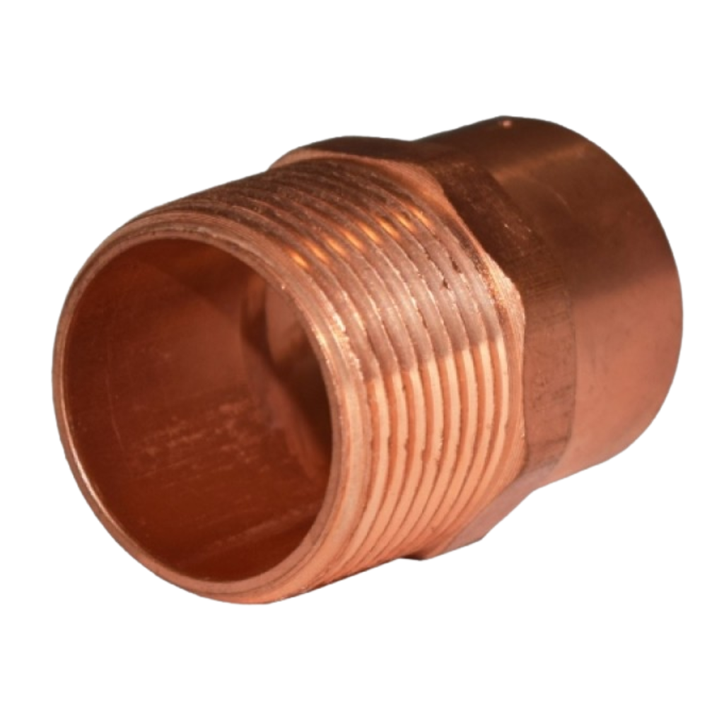 Accesorio de cobre que cuenta con una rosca exterior (tipo macho) para una instalación fácil a tubos, llaves de paso o mangueras.