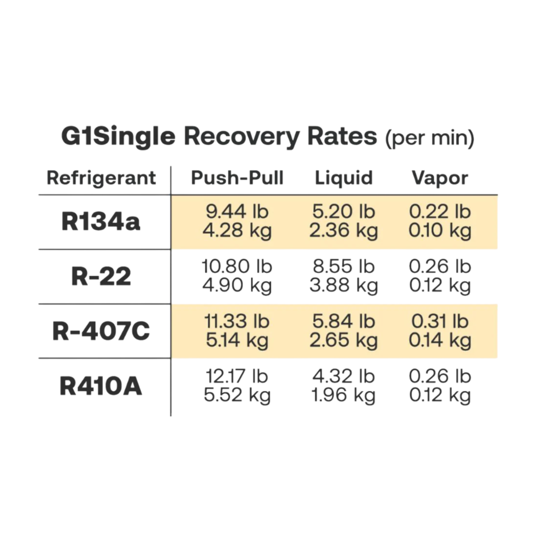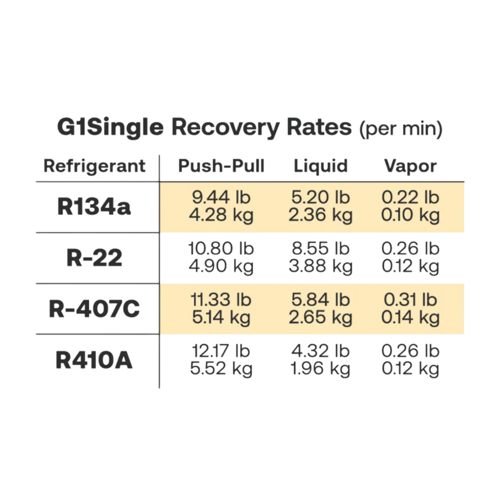 Ideal para su uso en recuperación residencial y comercial liviana, la G1 Single ofrece tasas de recuperación comparables a las bombas del doble de su tamaño.