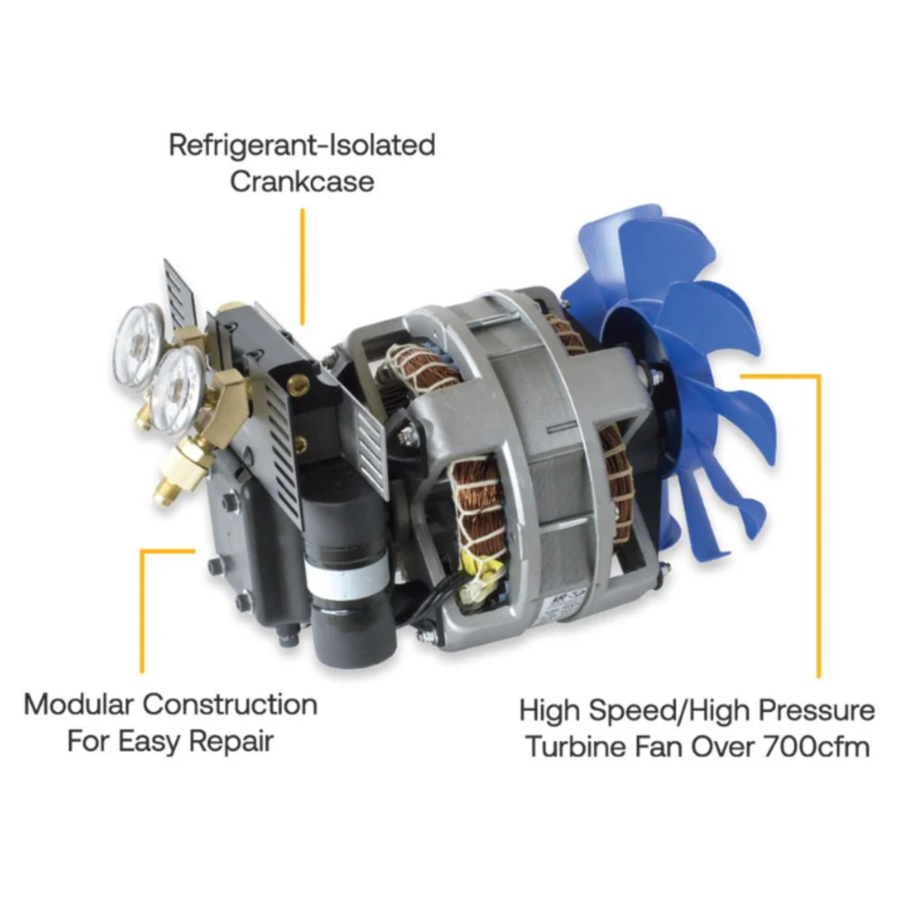 Recuperadora de refrigerante con recuperación automática de líquidos y vapores.
